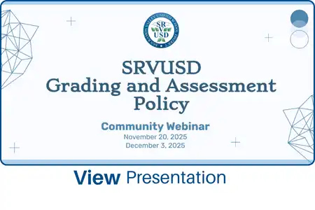 Assessment in the SRVUSD is a tool to provide consistent, meaningful, and accurate feedback that reflects progress towards mastery of specific and required standards to inform students, parents, and teachers about student learning.