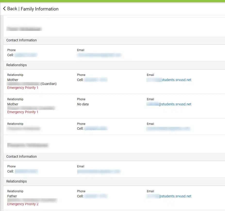 View Family/Contact Information